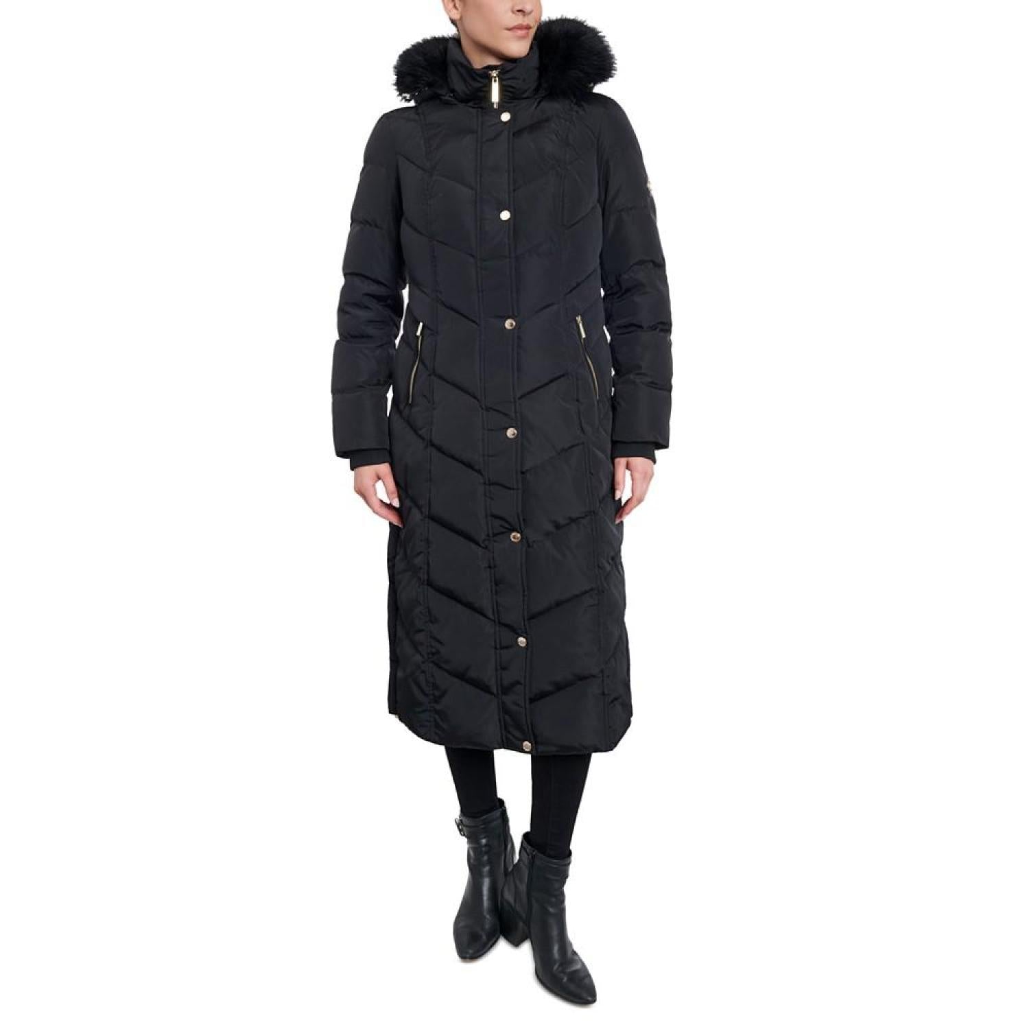 Gorgeous faux fur tops off this maxi-length puffer coat from MICHAEL Michael Kors, a chic pick designed with a pillow collar and two side pockets. Approx. model height is 5'7" and she is wearing a size M Approx. 46" long from center back to hem Pillow collar with zip-off hood & attached faux-fur trim; front zipper closure with button overlay Two side pockets Water-repellent Lined Shell & lining: polyester; body fill: down/feathers; side panel, hood & collar fill: polyester; fill power: 500; faux fur: modacrylic, polyester; knit trim: polyester, spandex Machine wash Imported
