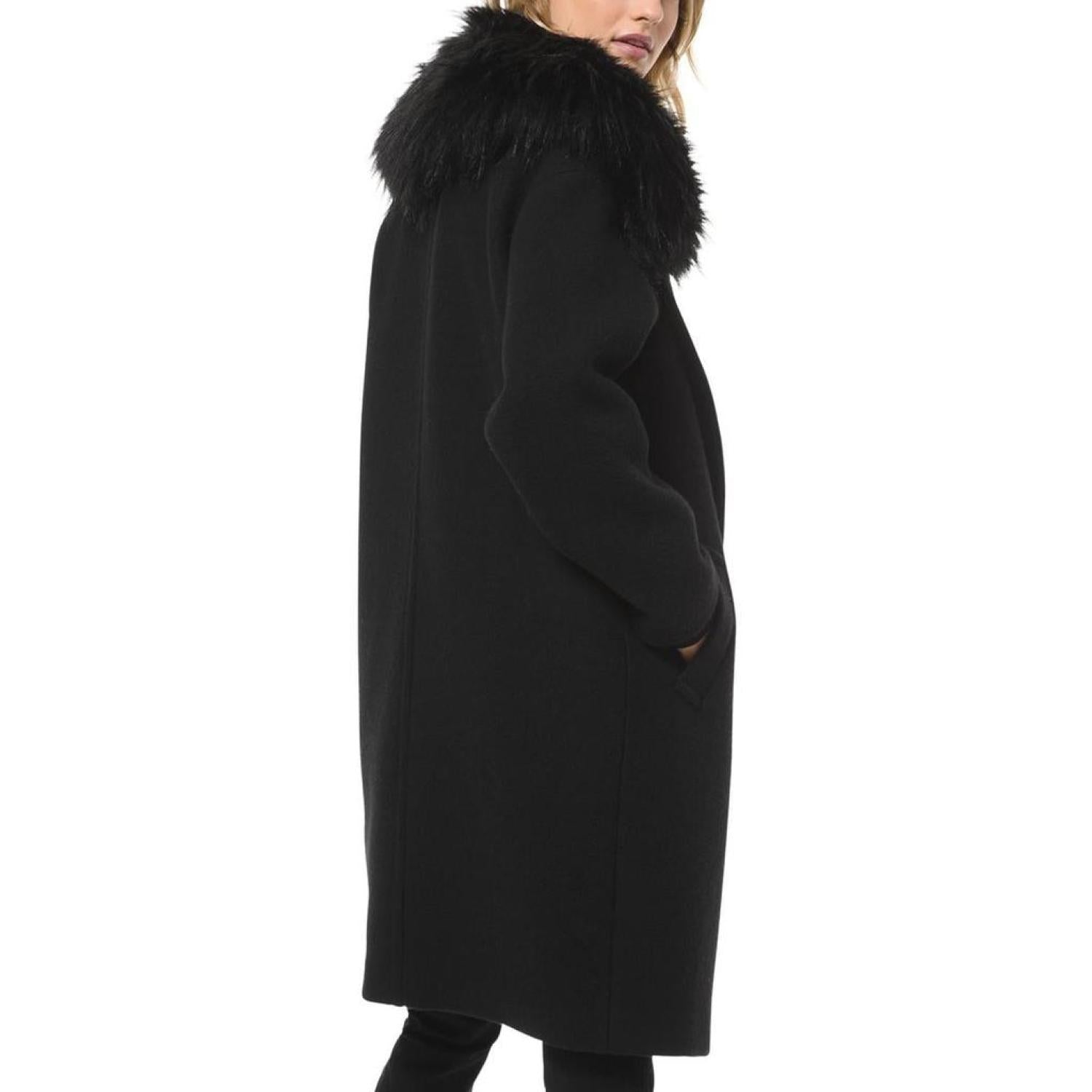 Womens Faux Fur Trim Midi Wool Coat