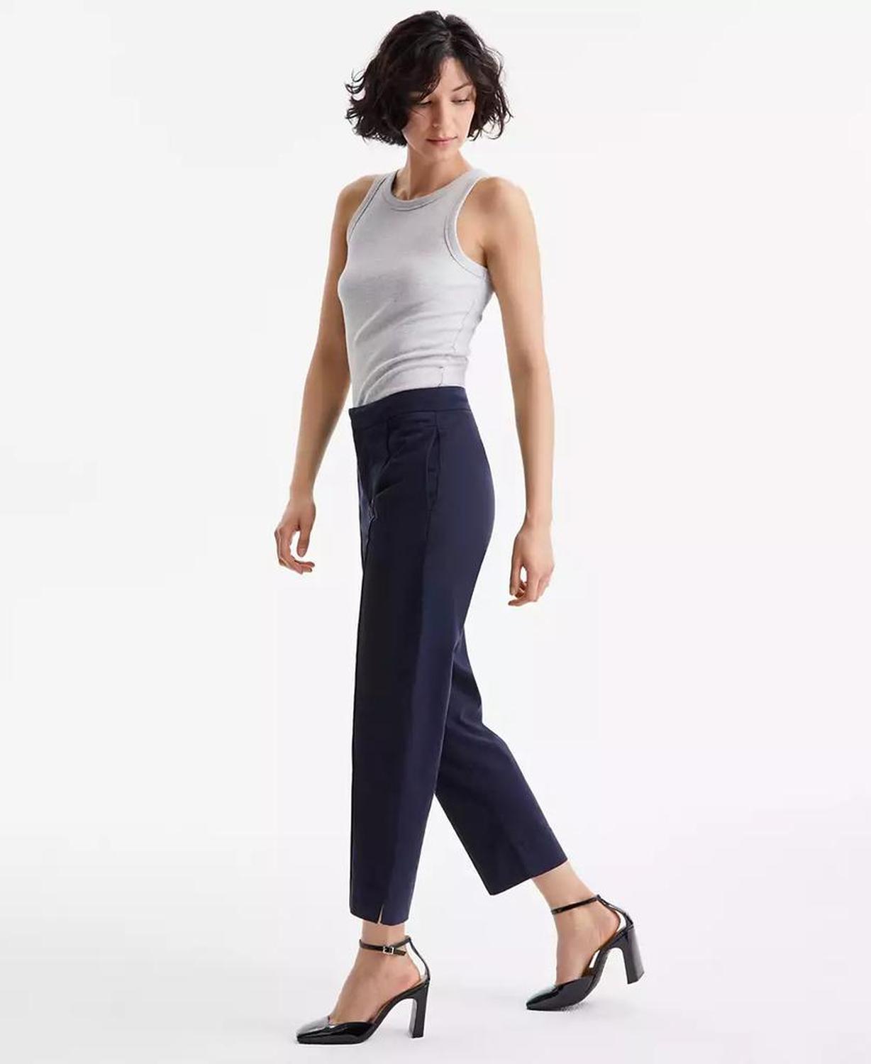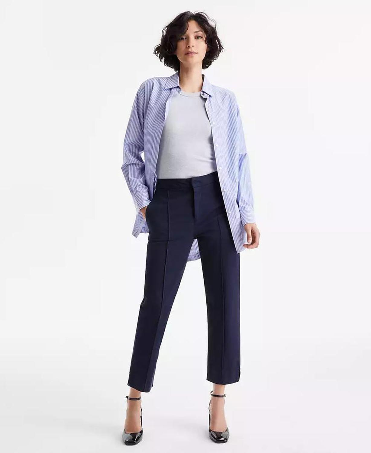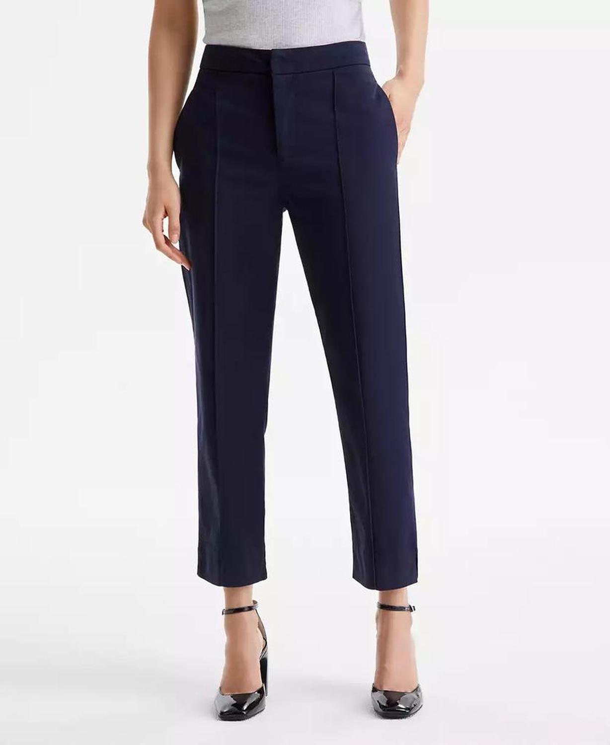 A center front piping lends a polished finish to these classically tailored pants by BOSS Orange, tapered for a sleek sophistication. Approx. inseam: 26-2/5" Approx. rise: 11-1/5"; approx. leg opening: 14-9/10"; tapered leg Zipper and hook-and-bar at front Center front piping Two on-seam pockets at hips; one welt pocket at back right 97% cotton, 3% elastane Machine wash Imported