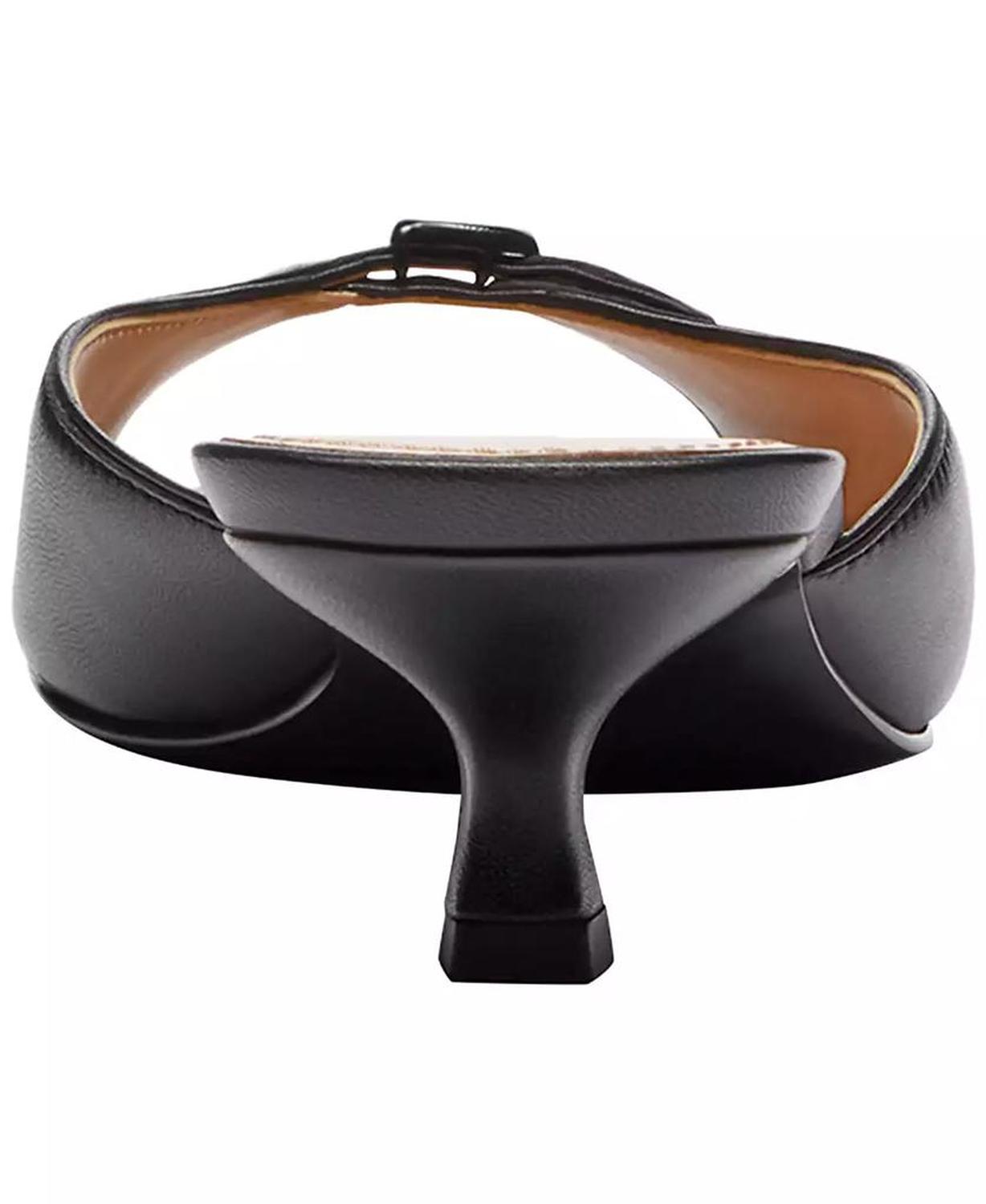 • Glide through events with confidence wearing these COACH dress sandals, featuring a kitten heel that provides a gentle lift without putting pressure on your feet. The rounded toe offers comfortable space, while the single sole supports stable steps.