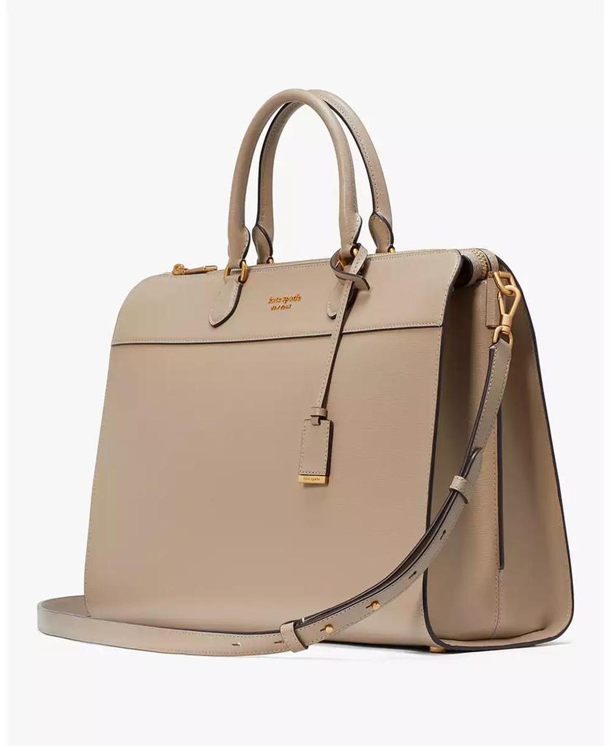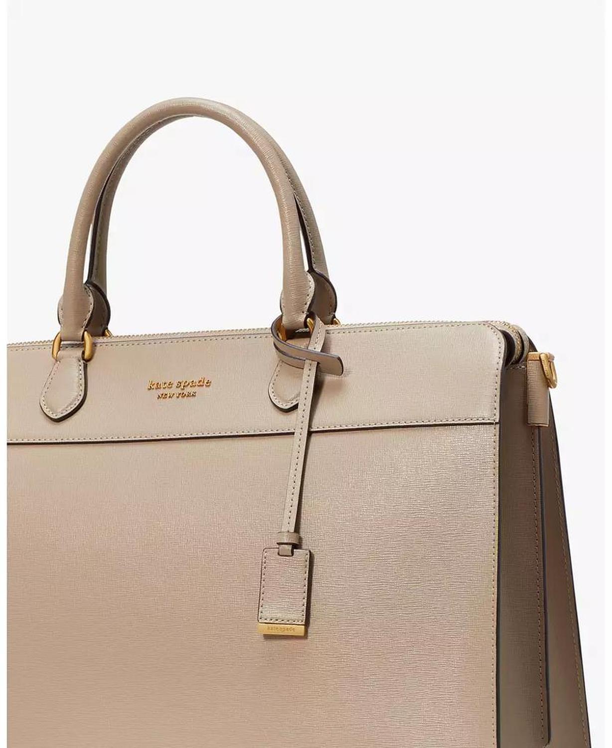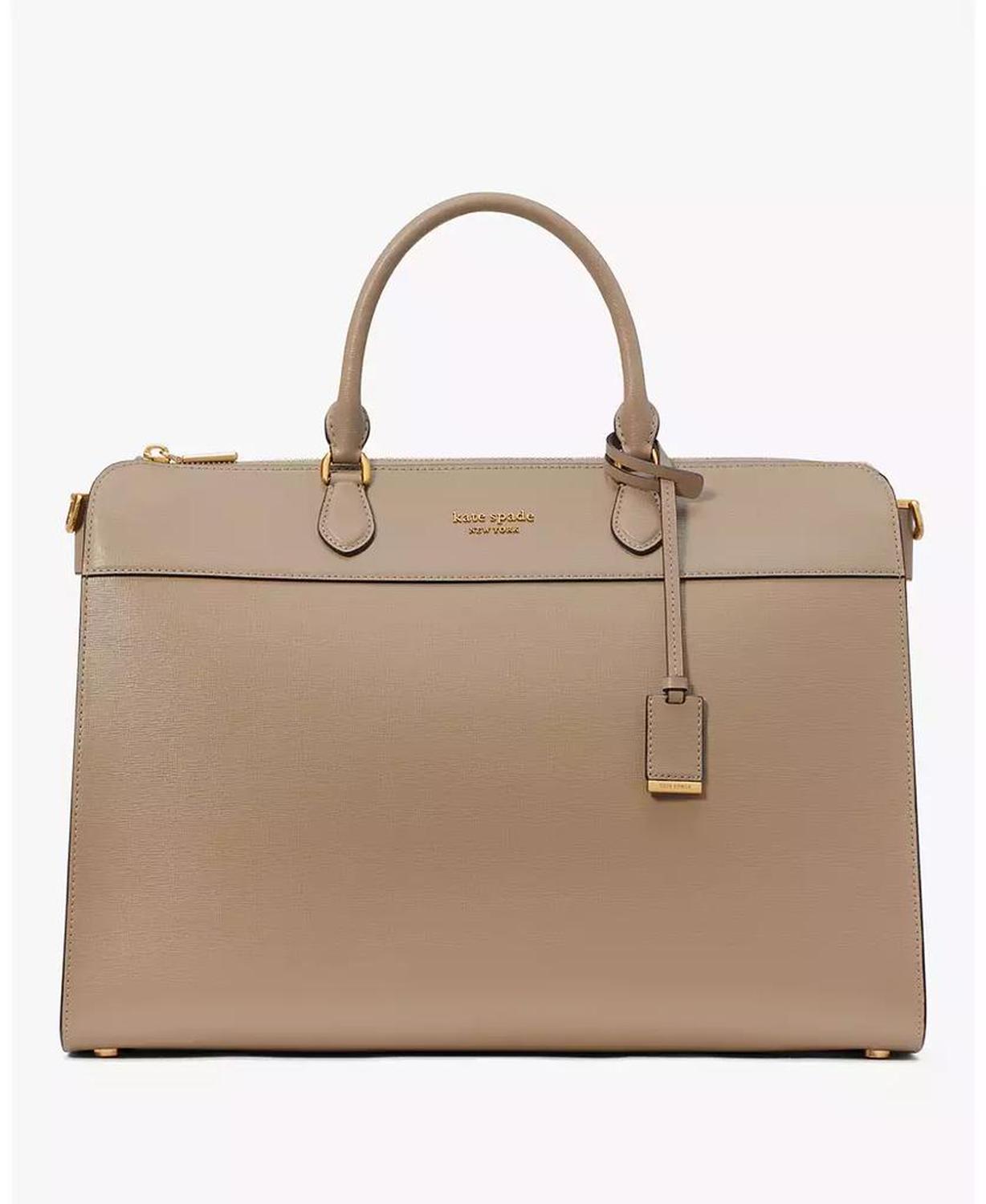 Looking for an elegant handbag that also fits your 16" laptop? We got you. This roomy Morgan style by Kate spade new york is done in scratch-resistant Saffiano leather with polished gold-tone hardware for a luxe look.