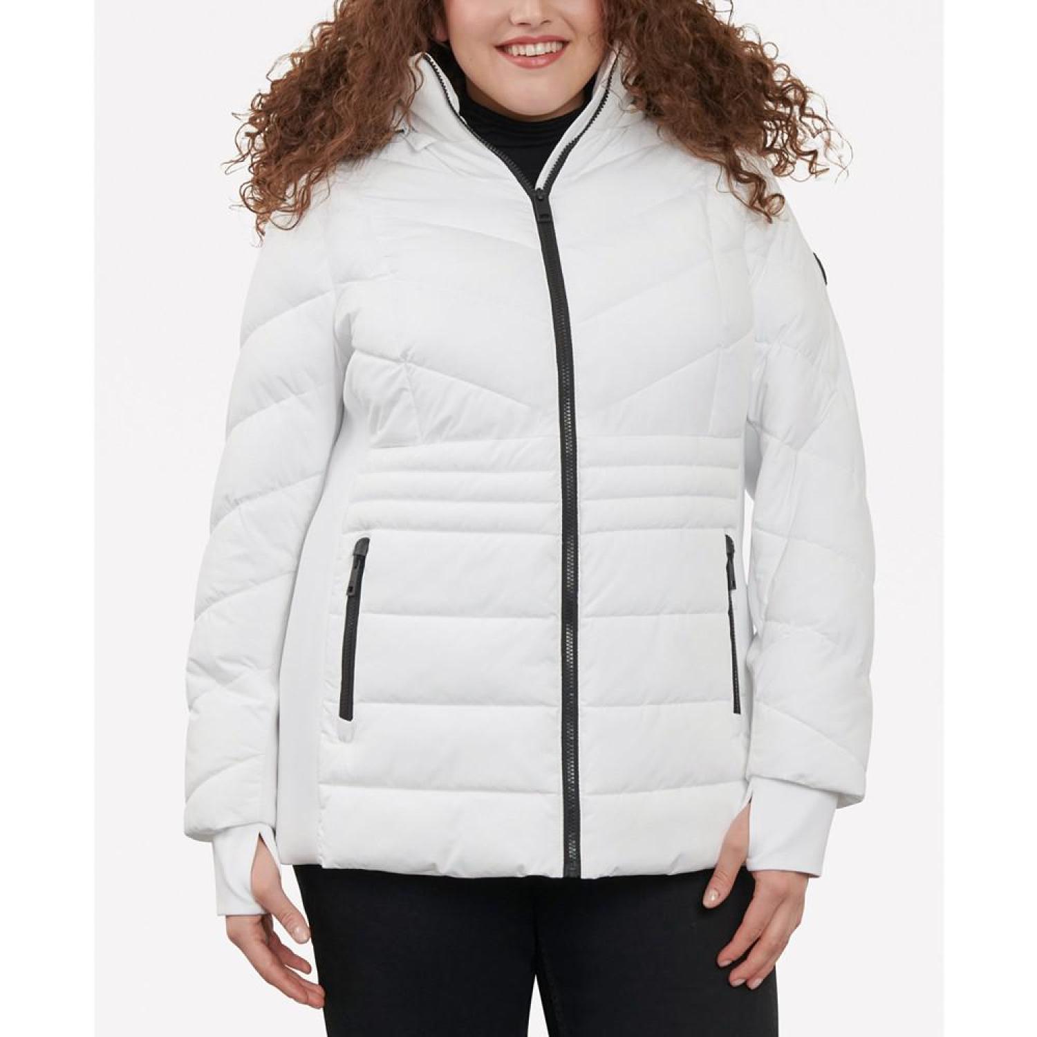 • MICHAEL Michael Kors' plus size puffer coat features sporty thumbhole cuffs paired with gorgeous faux-fur trim around the hood.