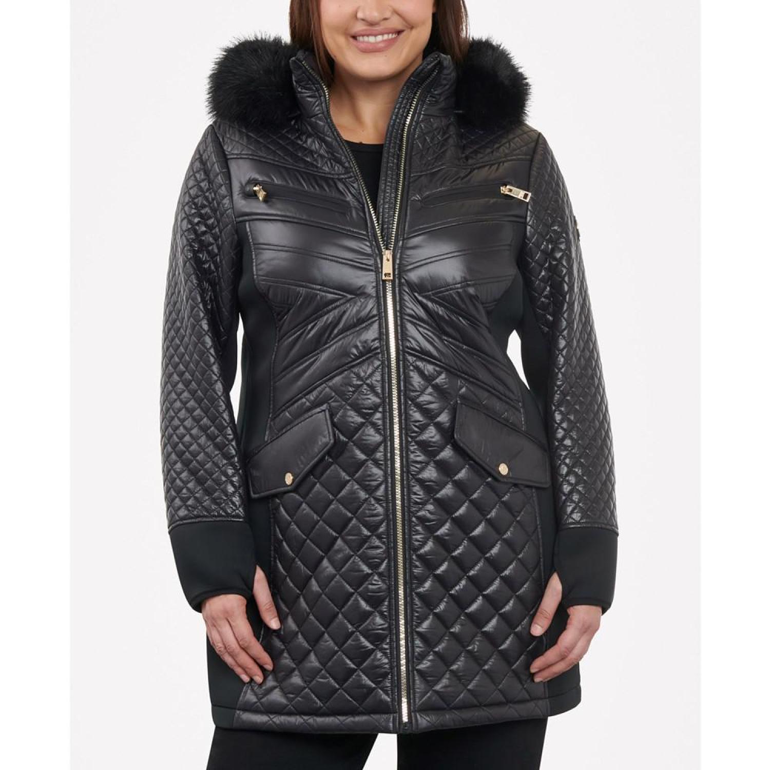 • MICHAEL Michael Kors' plus size coat is a beautifully quilted pick designed with chic faux-fur trim and cozy thumbhole cuffs.