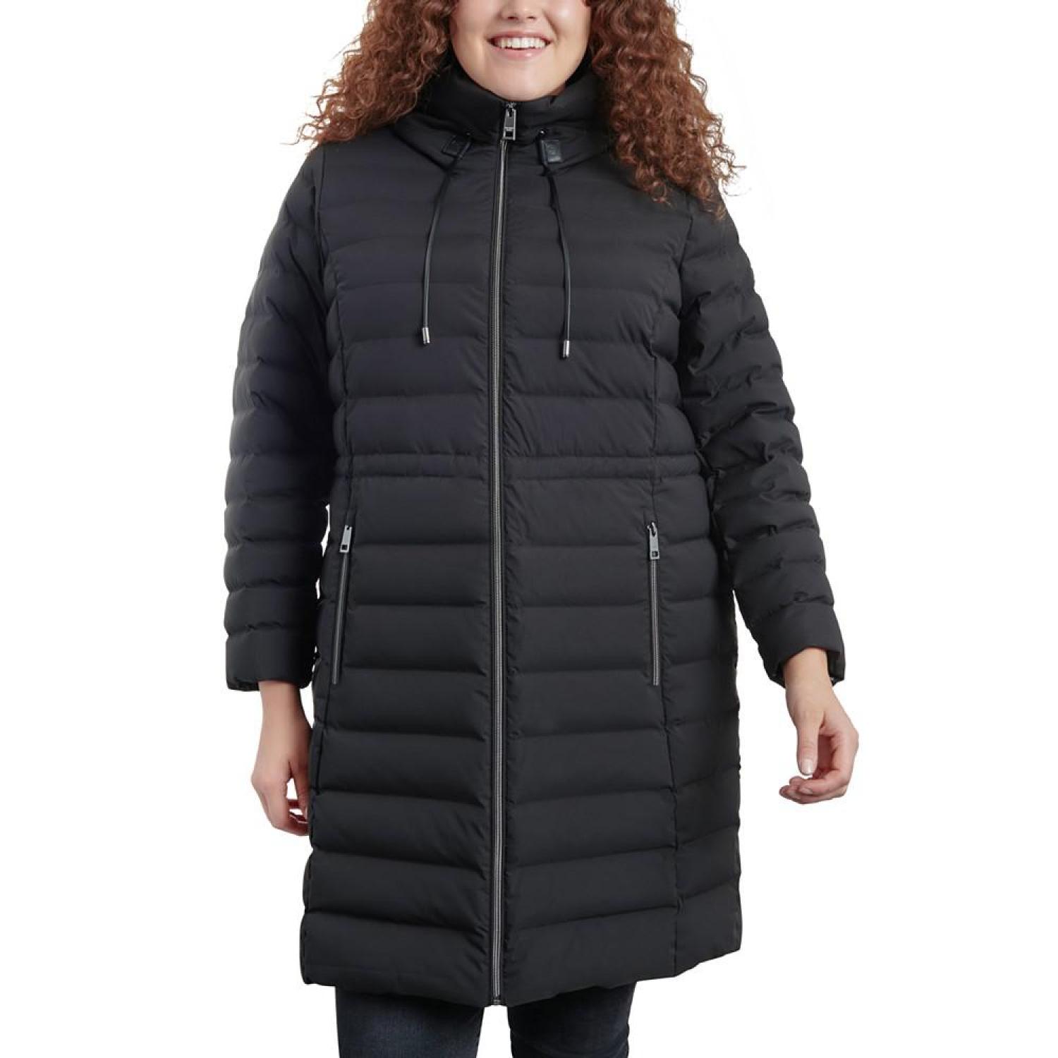 • MICHAEL Michael Kors' anorak-inspired puffer coat is a plus size pick designed with faux-leather accents and a cozy hood.