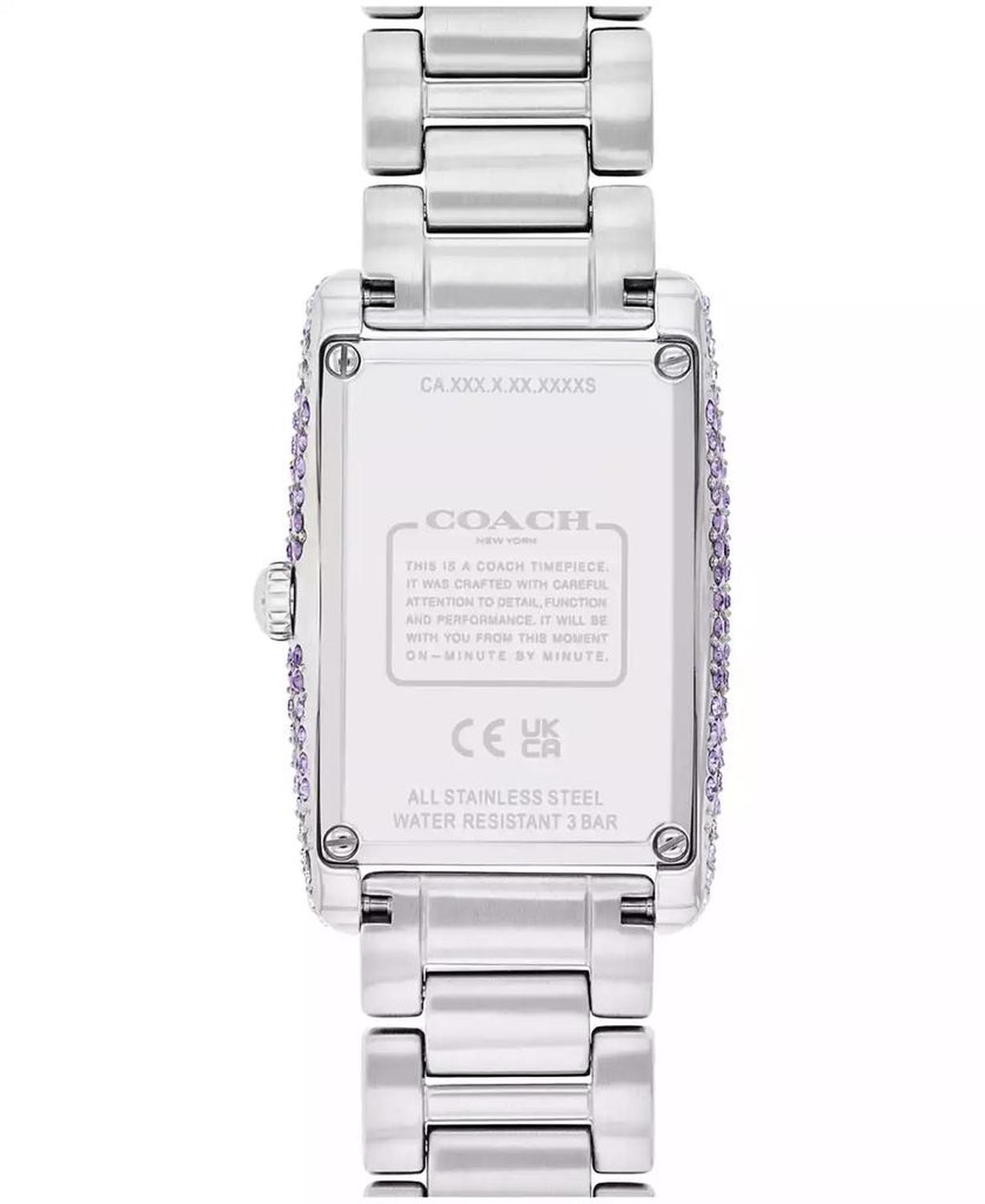 • A sophisticated go-everywhere style, Reese is a sleek watch with a classic rectangle silhouette. The stainless-steel bracelet design dazzles with purple ombré pavé crystals and features a silver white sunray dial detailed with clear crystal markers. SKU 14504413