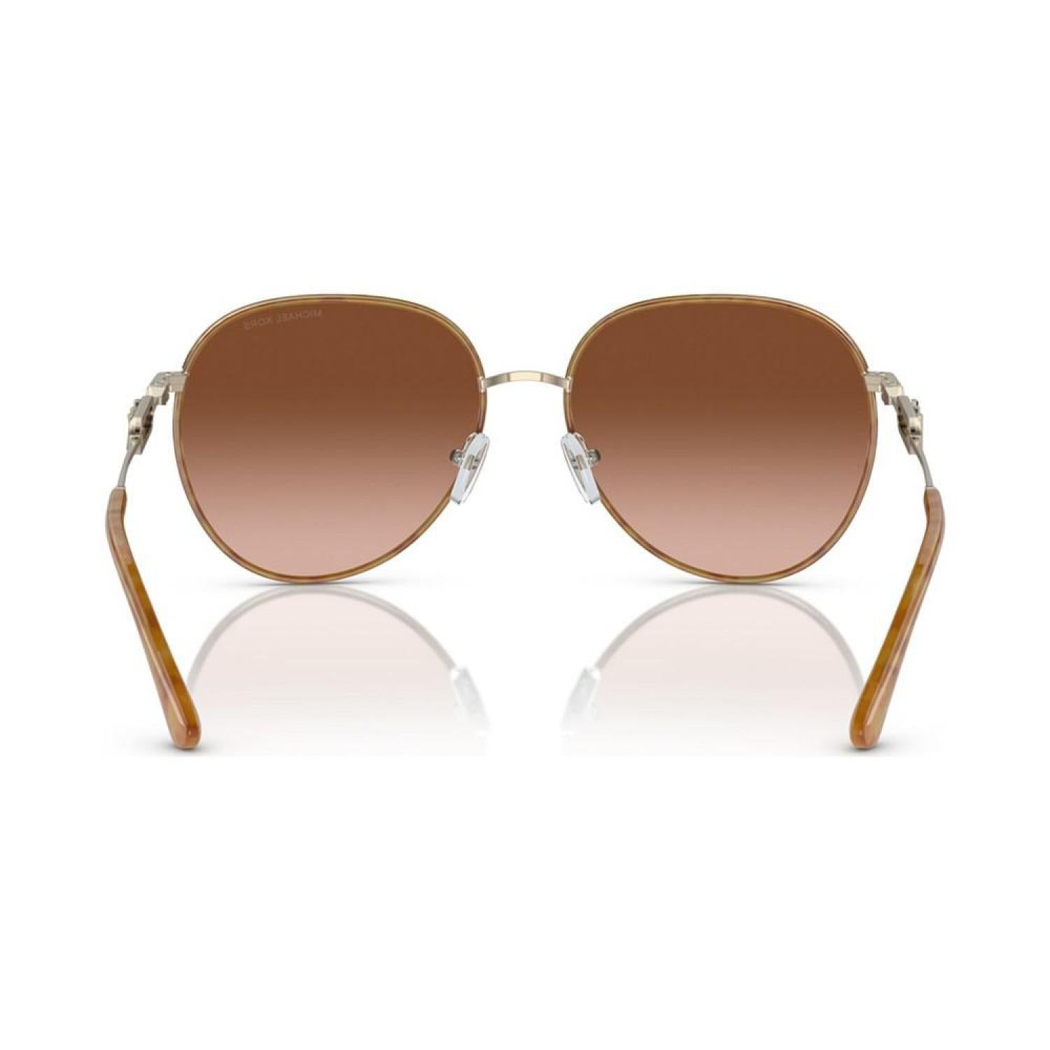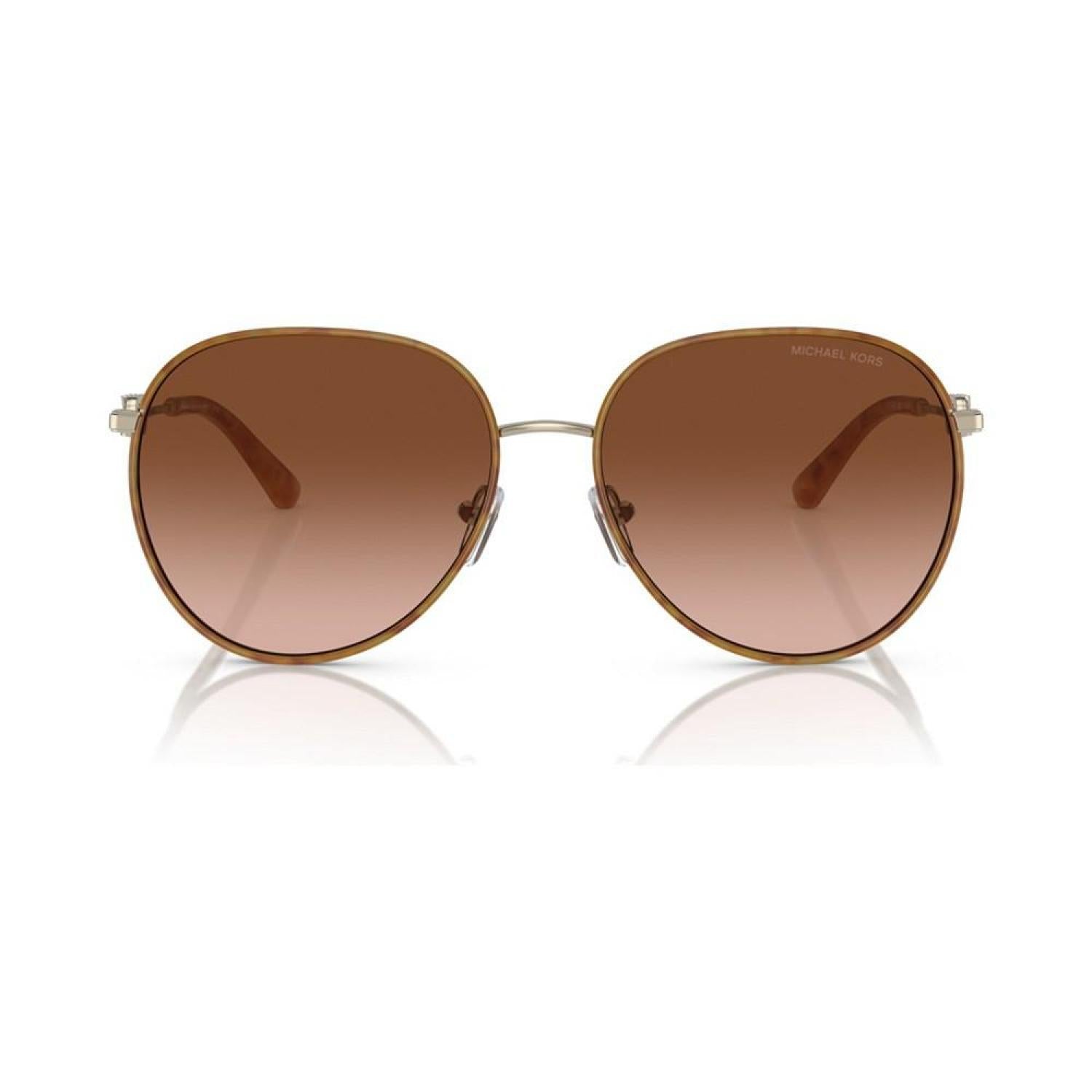 Dynamic metal pilot shape with gradient lenses. Frames featuring front Windsor rim accents. Temple featuring a delicate take on the Michael Kors empire hardware. Frame shape- Pilot Frame material- Metal Frame type- Full rim Gender- Female Eye/Bridge/Temple width- 58/17/145 Lens features- Gradient Best for face shape- Oval, heart, square Low bridge fit- No Metal Wipe Clean Imported