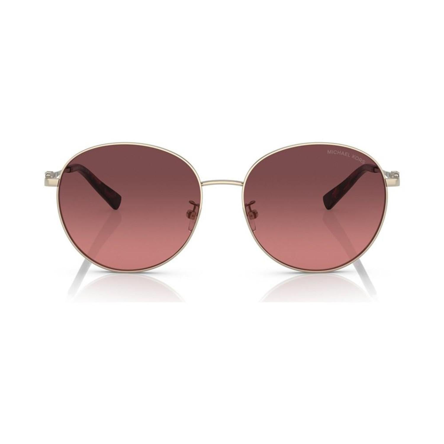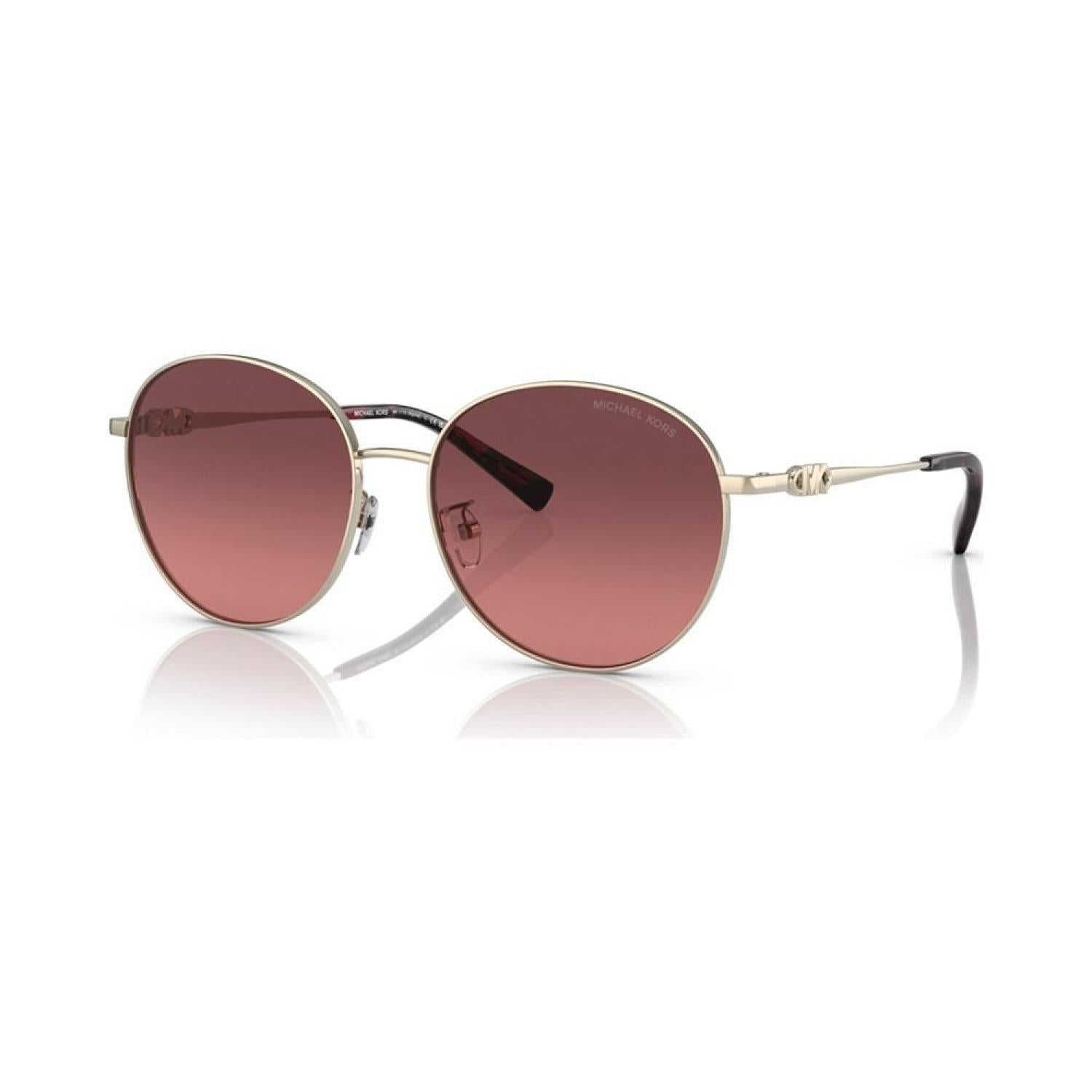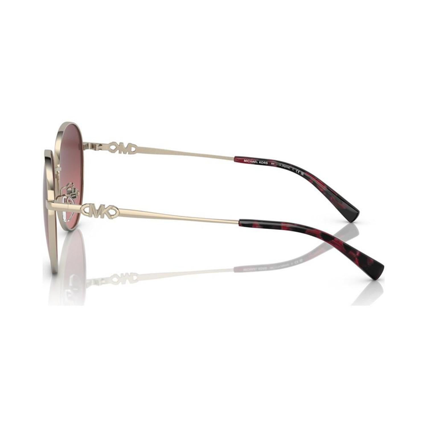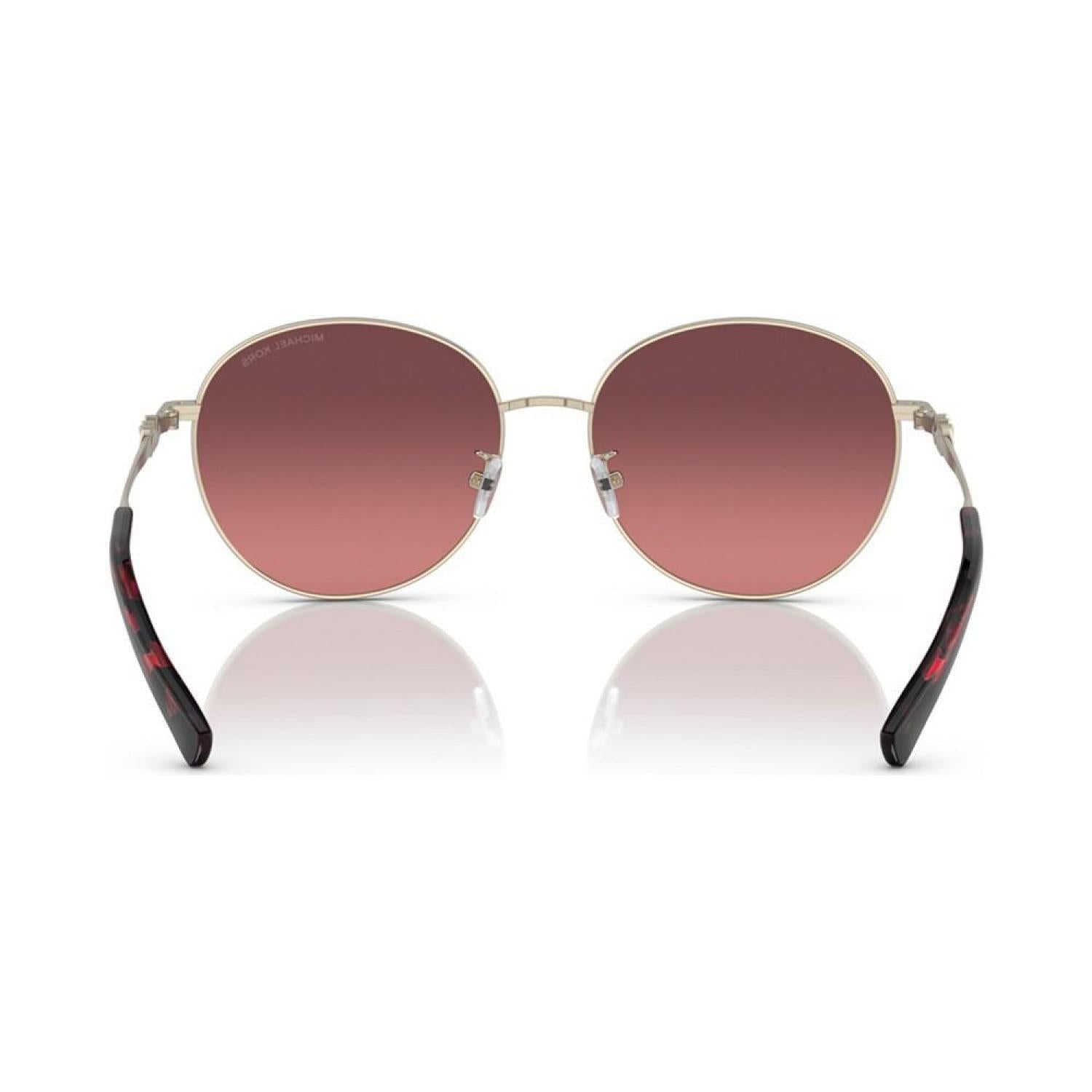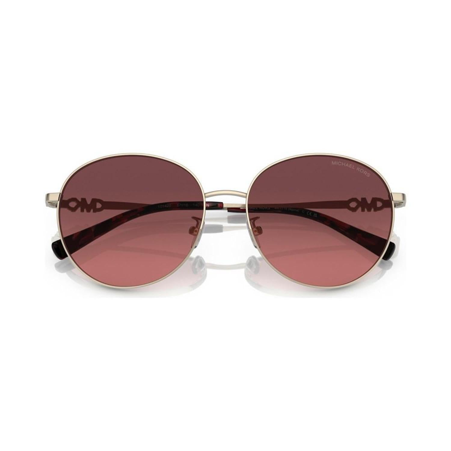 Glam round metal shape with metal temple featuring feminine color lenses. Round metal front with adjustable nose pads. Classic colorations paired with galvanic metal colors that tie back to MK's seasonal palette. New metal temple featuring updated faceted MK logo. Plastic temple tip for comfort. Frame shape - Round Frame material - Metal Frame type - Full rim Gender - Female Eye/Bridge/Temple width - 57/16/140 Lens features - Gradient Best for face shape - Oval, heart, square Low bridge fit - No Metal Wipe Clean Imported