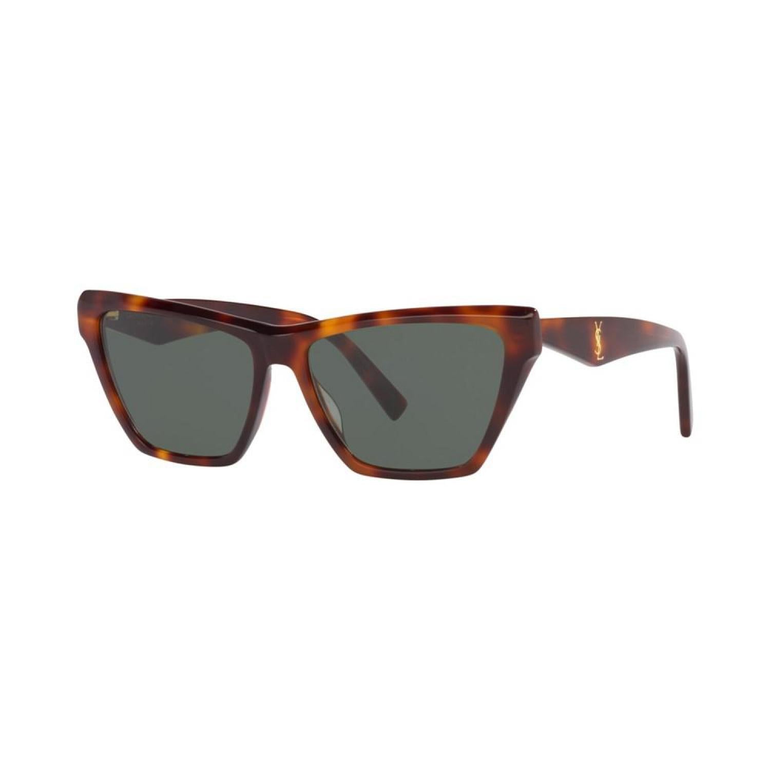 A strong feminine cat eye shape, the evolution of the monogram line in a new iconic version. The style is characterized by a new temple design on which the YSL logo is placed in its perfect position. The style is available in the iconic monogram color palette. Frame shape - Cat eye Frame material - Acetate Frame type - Full rim Gender - Female Eye/Bridge/Temple width - 58/15/145 Lens features - Solid color Best for face shape - Oval, square Low bridge fit - No Acetate Wipe Clean Imported