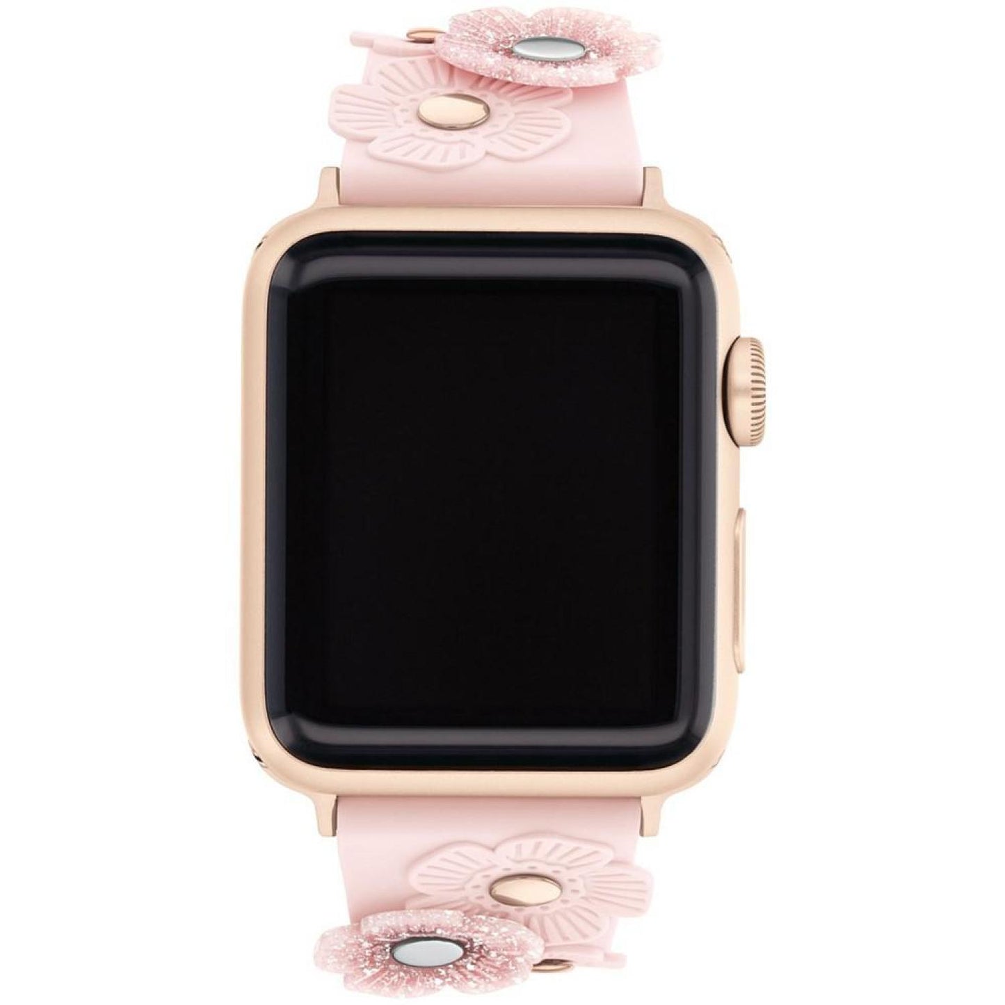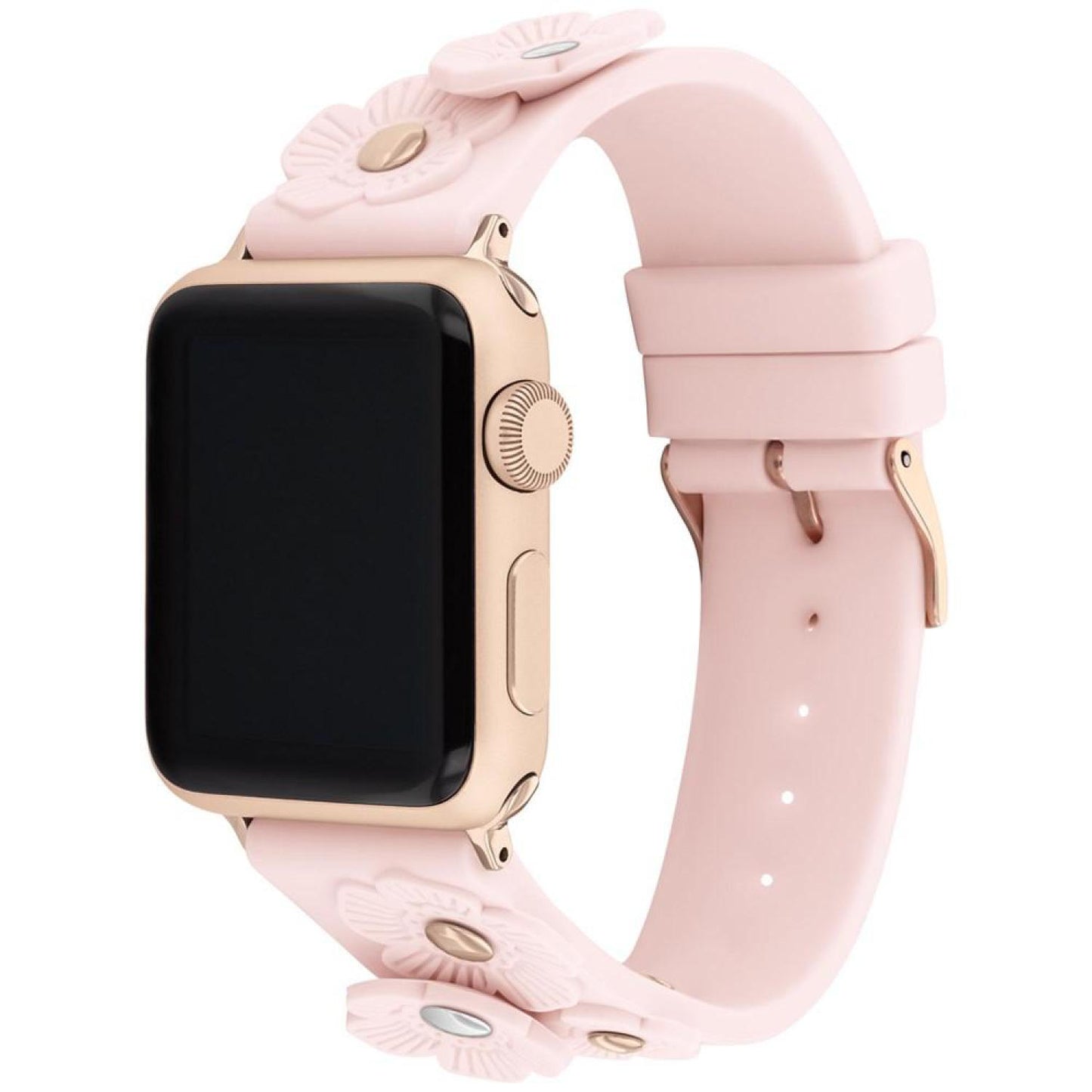 Made exclusively for use with the 38mm and 40mm apple watch, this blush rubber strap is detailed with the coach tea rose applique - an intricate dimensional motif made up of prairie-inspired blooms and rose gold tone hardware. Strap: blush silicone strap with tongue buckle Warranty: 2-year limited Strap comes in a gift box Compatible with 38mm, 40mm and 41mm Apple Watch Imported