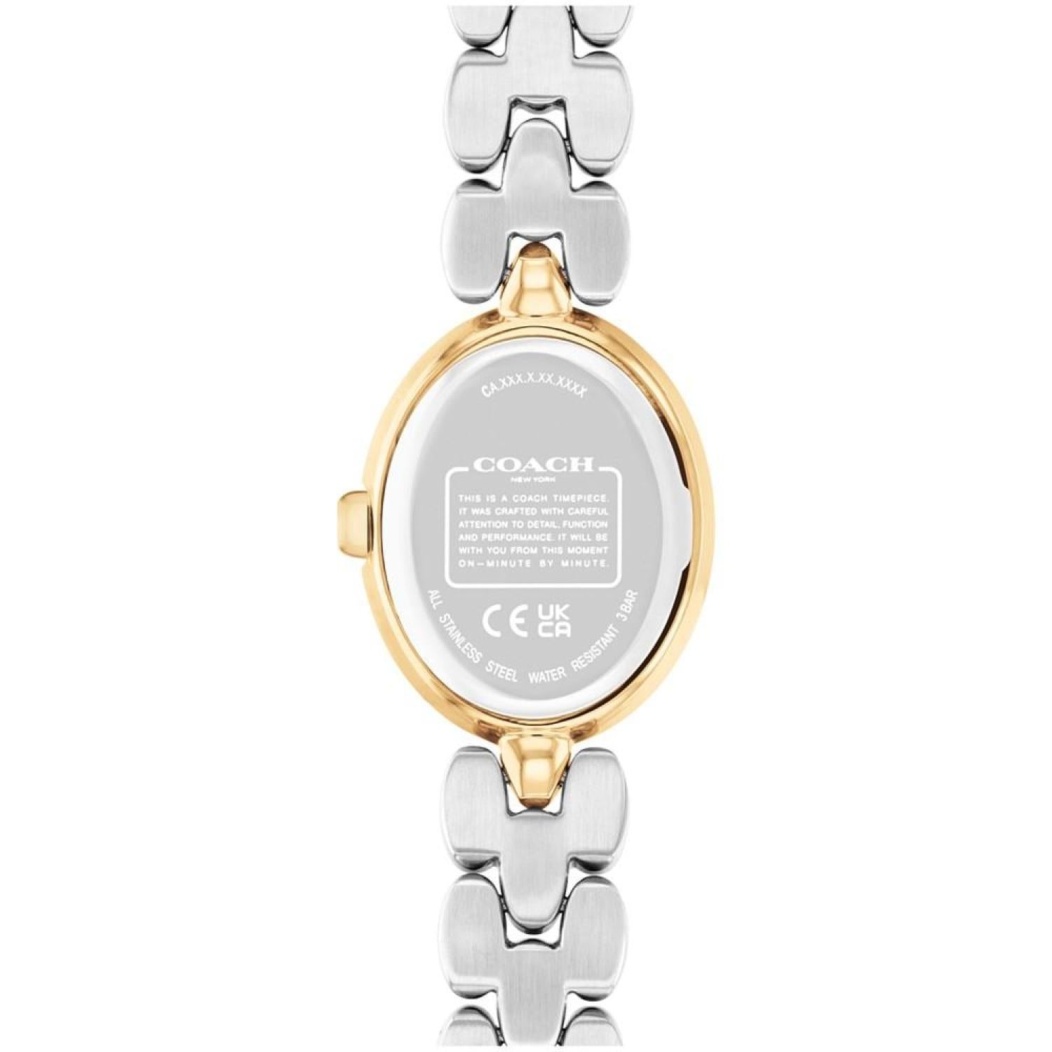 • Designed with a modern minimalist sensibility, the Sammy is a refined timepiece perfect for every day. This two-tone stainless steel and gold tone bracelet watch features a silver white Coach Signature dial detailed with polished gold tone markers. Style 14504419