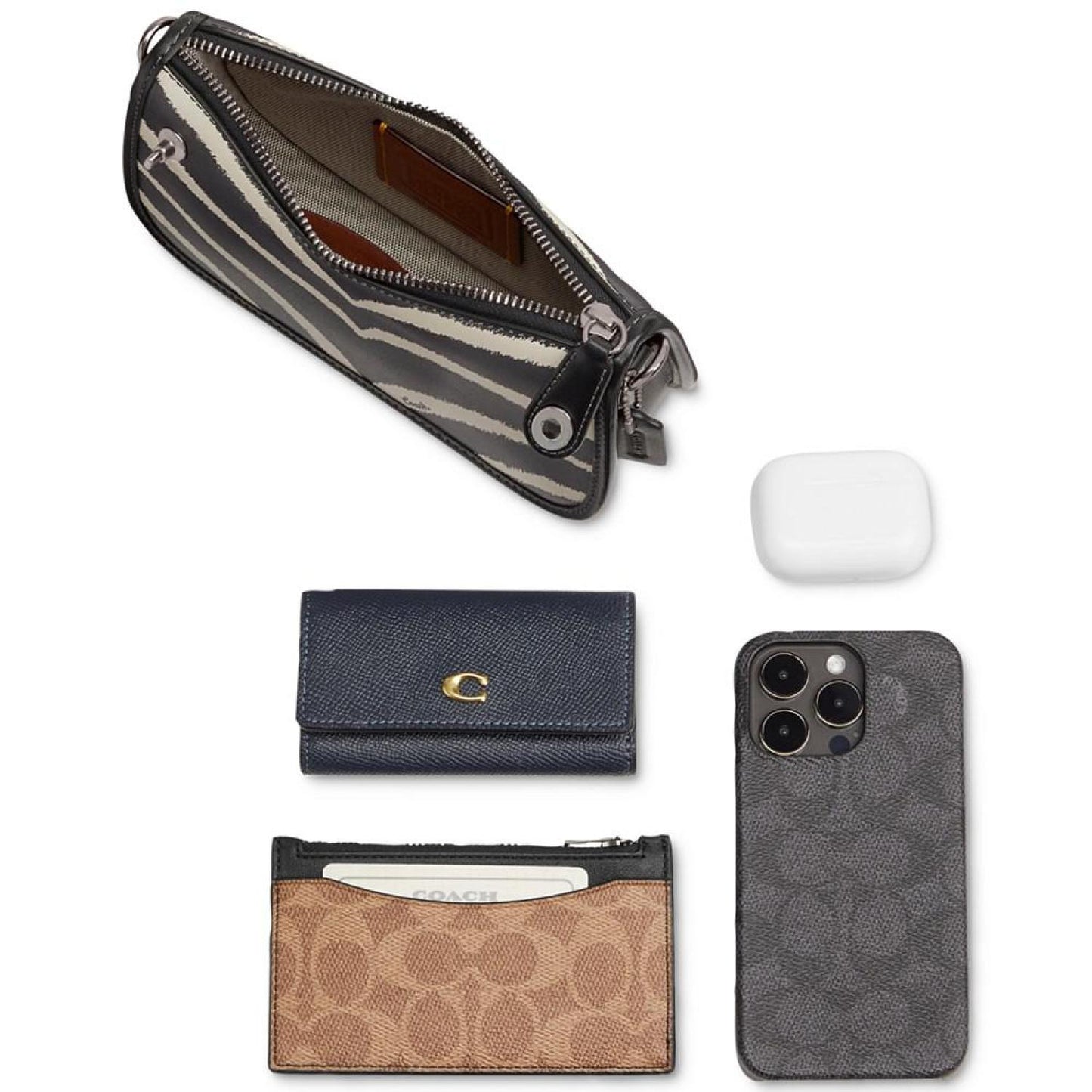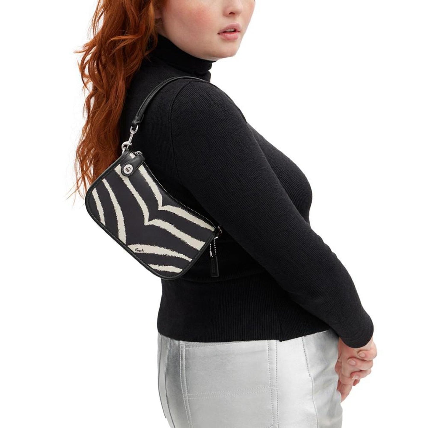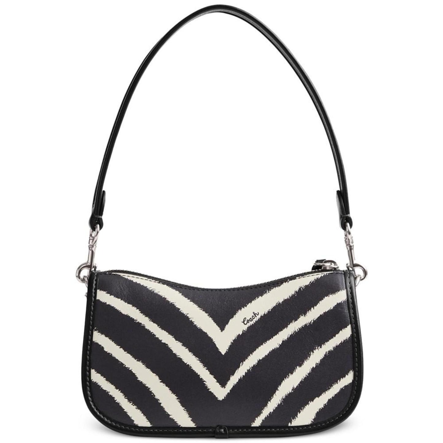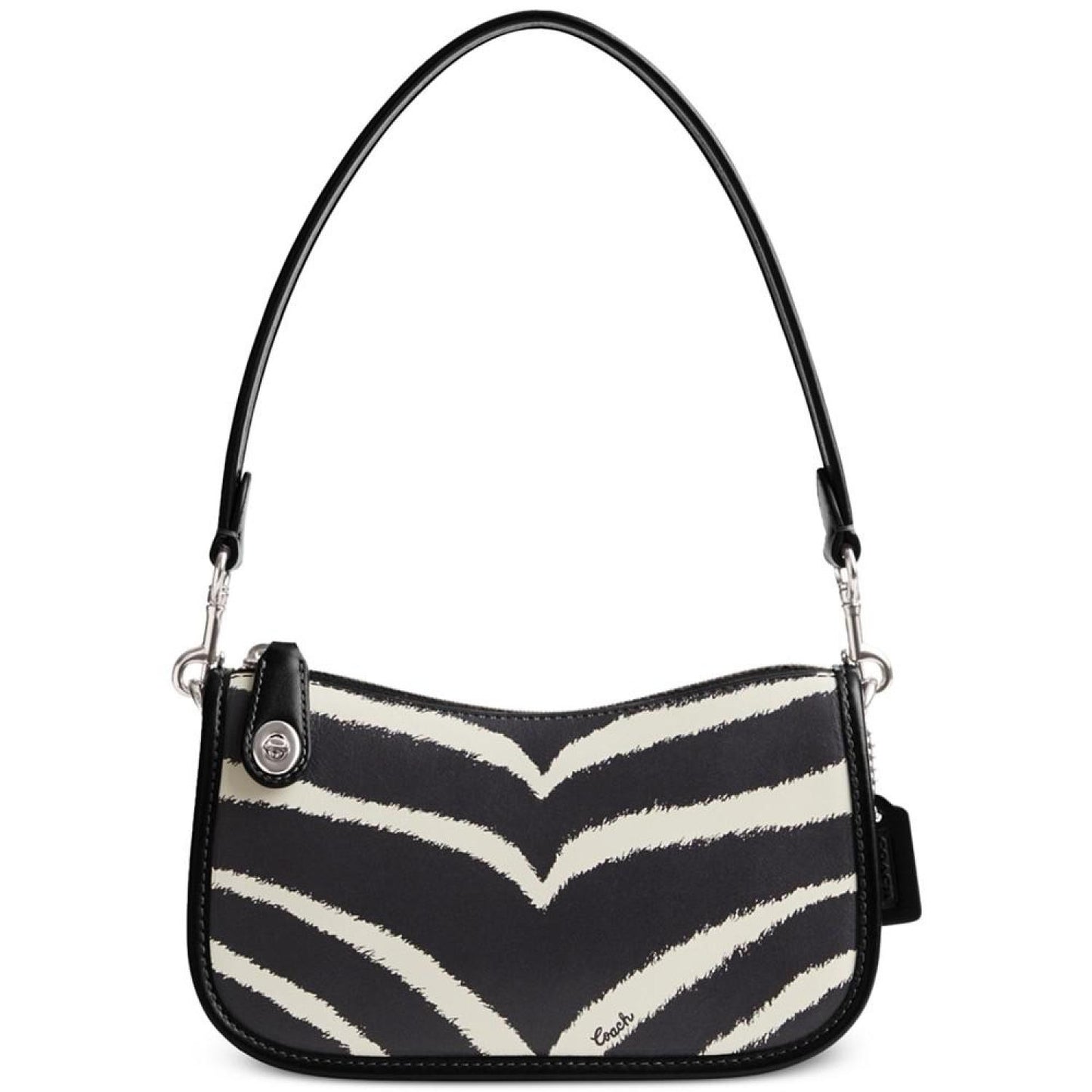 • Perfectly compact, this Zebra Printed Mini Leather Swinger 20 by COACH lends an edge to sophistication.