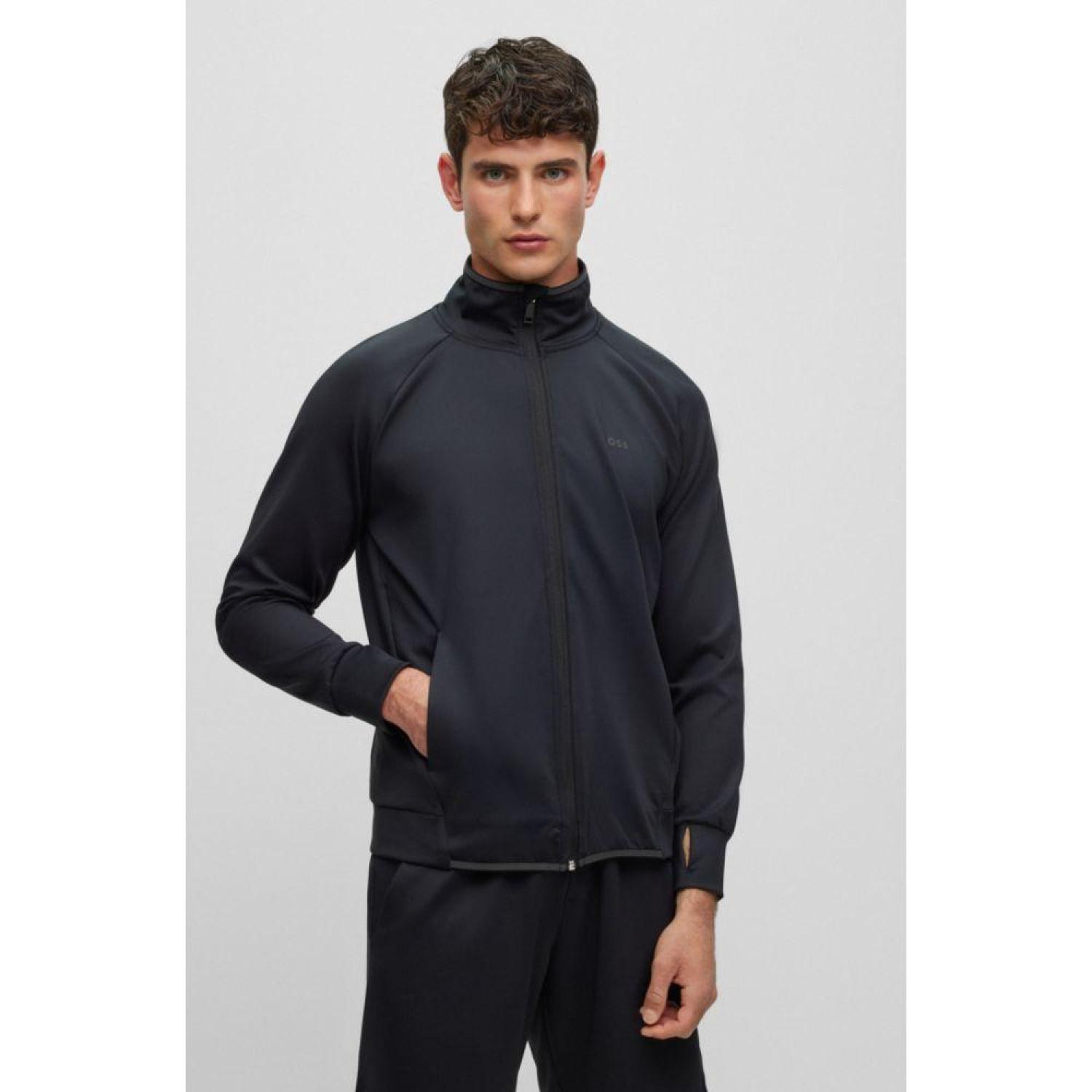 A regular-fit zip-up sweatshirt by BOSS Menswear, designed in active-stretch fabric with decorative reflective elastic binding, a logo detail and sporty thumbholes.
